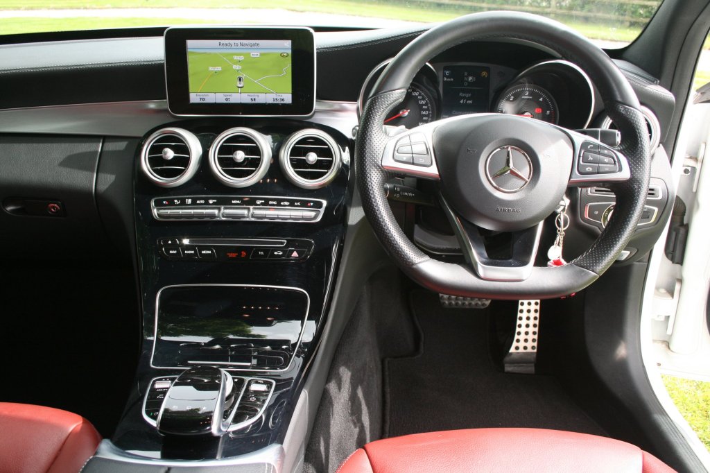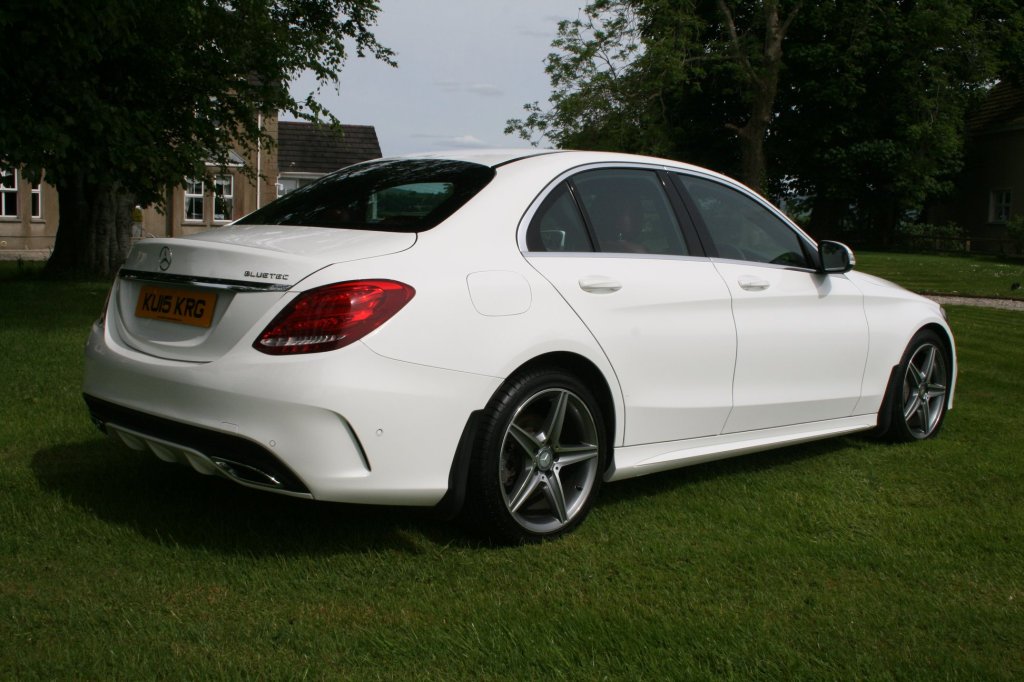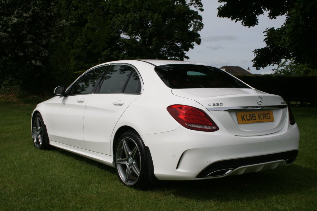 2015 Mercedes C220 AMG Line Bluetec Auto, presented in the best colour combination of Polar white with an amazing red leather sport interior. It has covered just 80,000 miles and comes with a full service history.